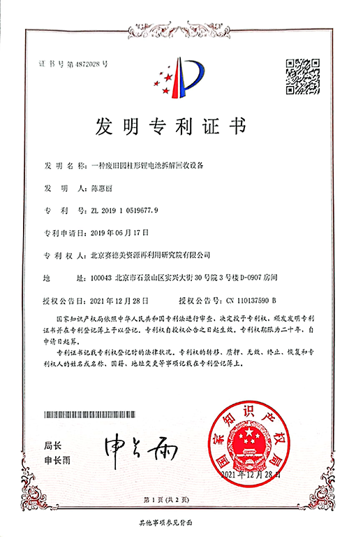公司是目前国内物理法回收技术 (精确拆解+材料回收)的开创者、先行者,是符合《新能源汽车废旧动力蓄电池综合利用行业规范条件》第二批白名单的综合回收利用企业。